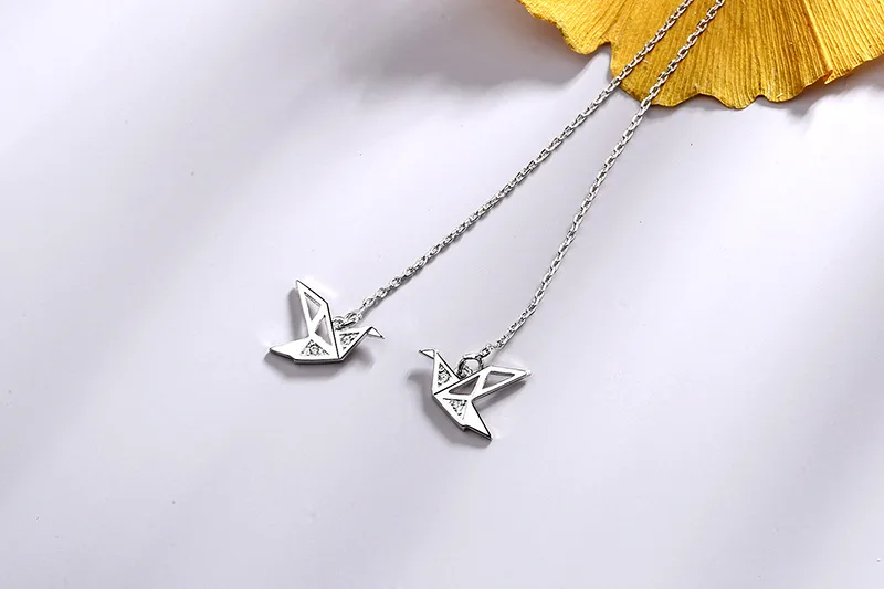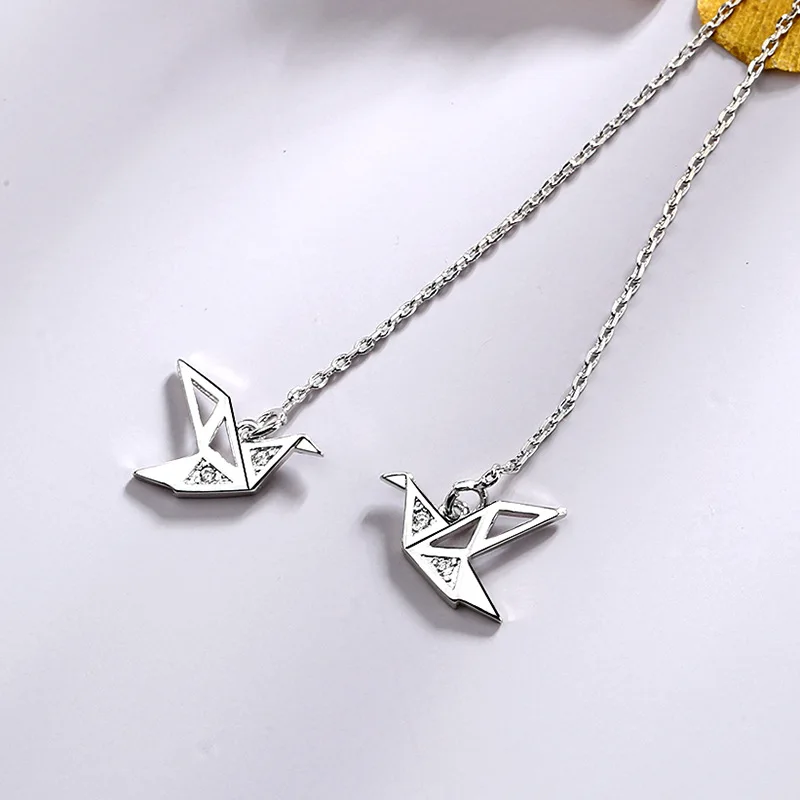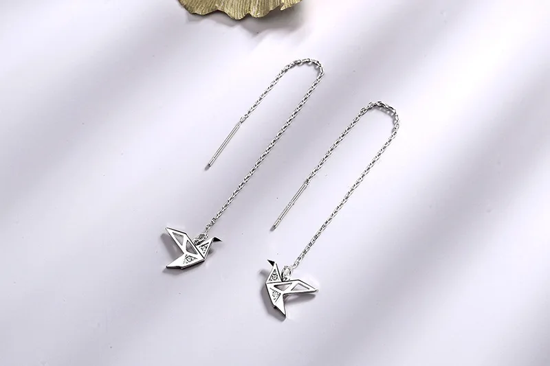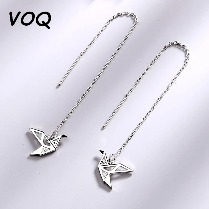 VOQ серебряный цвет простой бумажный журавль длинные уши цепи серьги для женщин подарок серьги