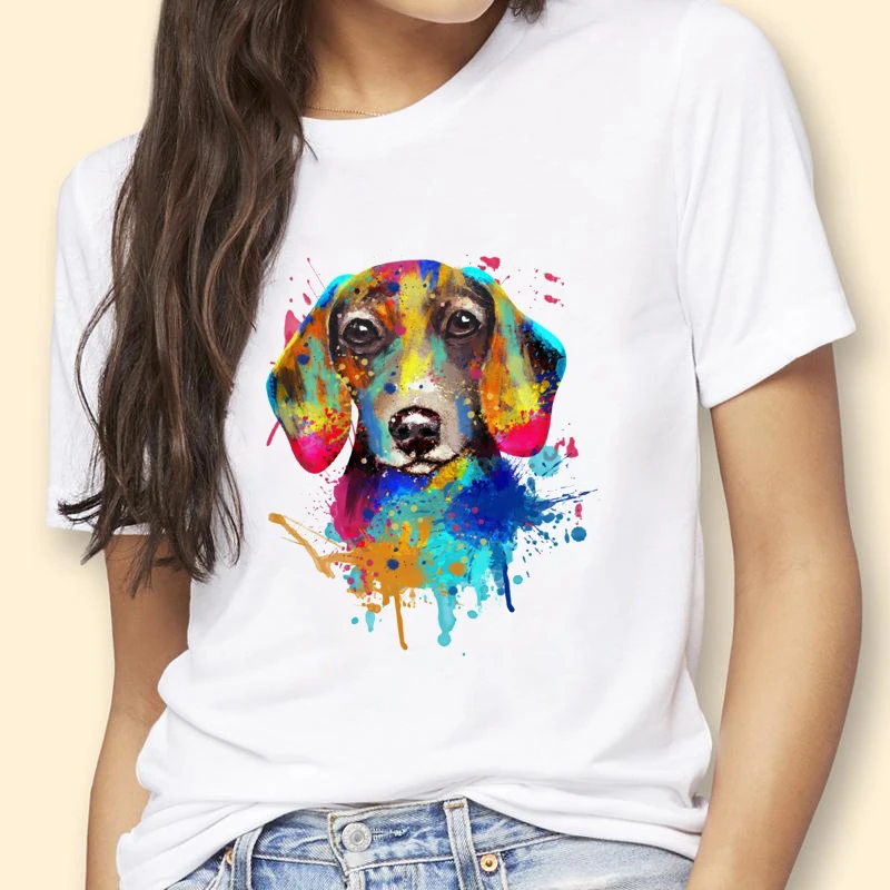 Футболка женская летняя белая с принтом таксы