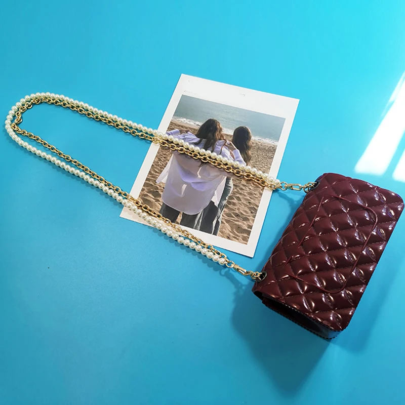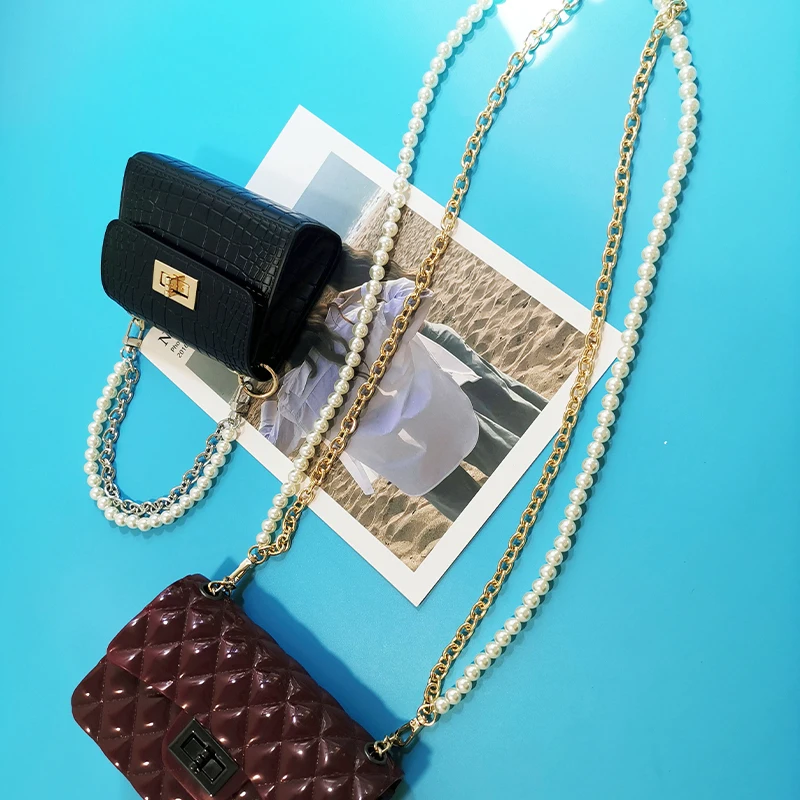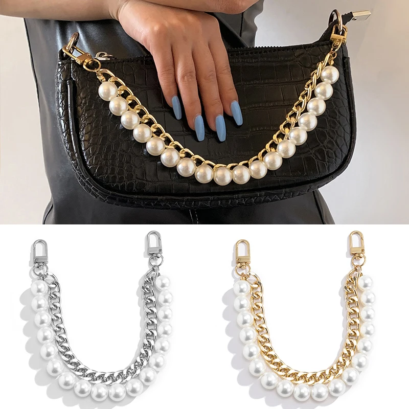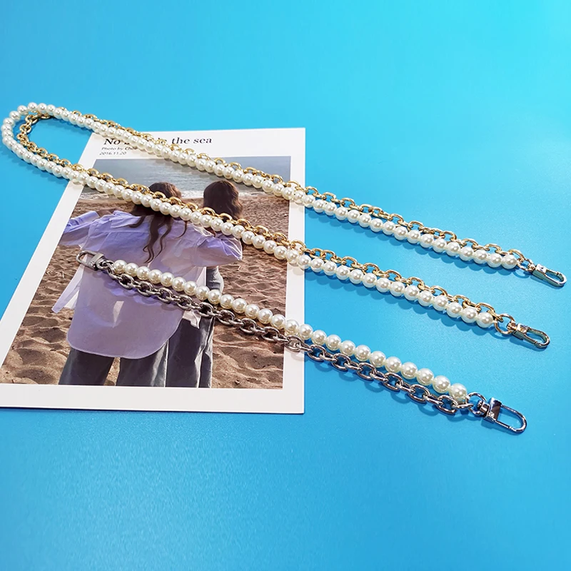 Новый фирменный жемчужный ремешок для сумок, аксессуары для сумок, кошельки, ремни, ручки, милая цепочка с бусинами, женские части, серебристаяЗолотистаячерная застежка