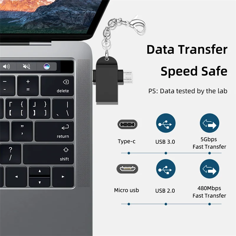 Мини-адаптер 2 в 1 OTG USB 3,0Type C, быстрый кабель-преобразователь для телефона, ПК, планшета, флеш-накопителя, USB мыши, клавиатуры