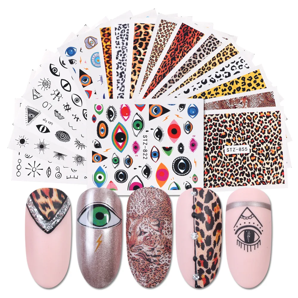 19 шт. новые наклейки для ногтей с водяными знаками Набор наклеек с леопардовым принтом глаза популярные художественные декоративные слайдеры эстетические наклейки