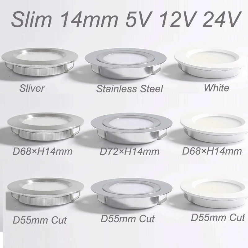 D55мм, тонкий 14 мм, 12В с регулируемой яркостью