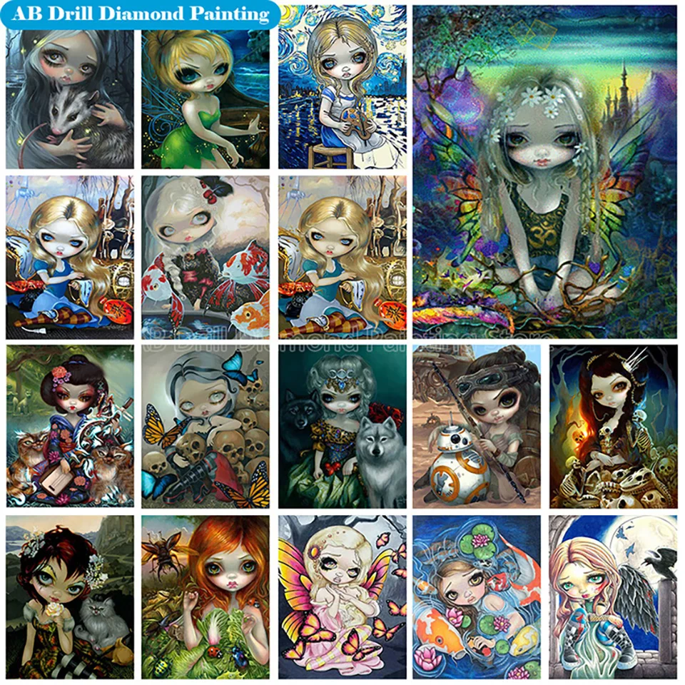 Алмазная живопись 5D с изображением ангела Девушки AB, животные, во...