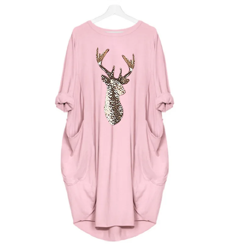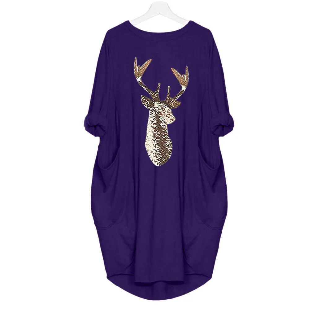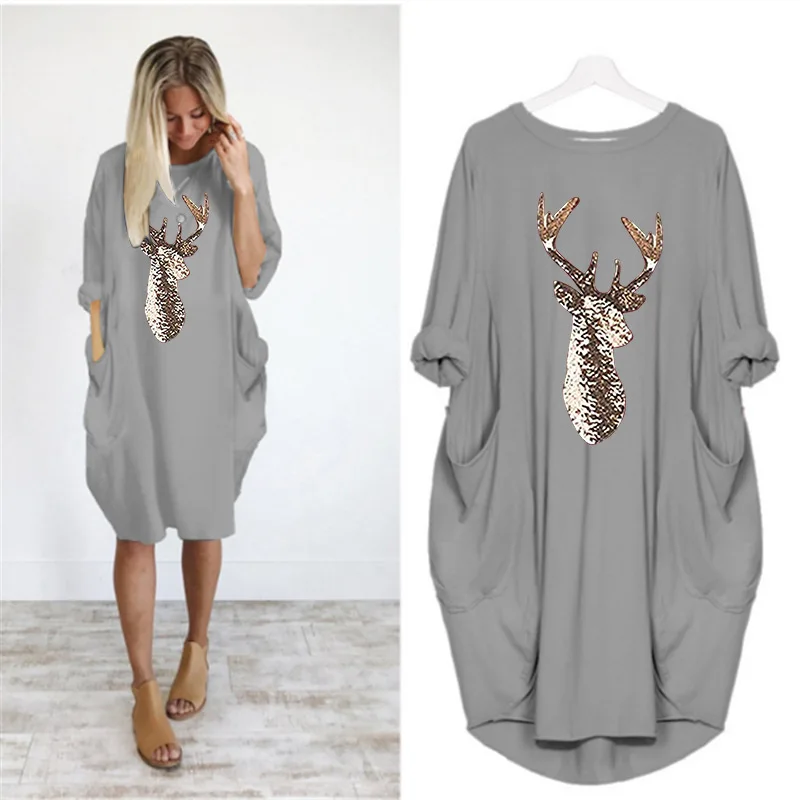 Новое рождественское платье с принтом, с круглым вырезом, Осень-зима, разноцветная уличная одежда, свободная трапециевидная одежда, большие размеры, S-5Xl