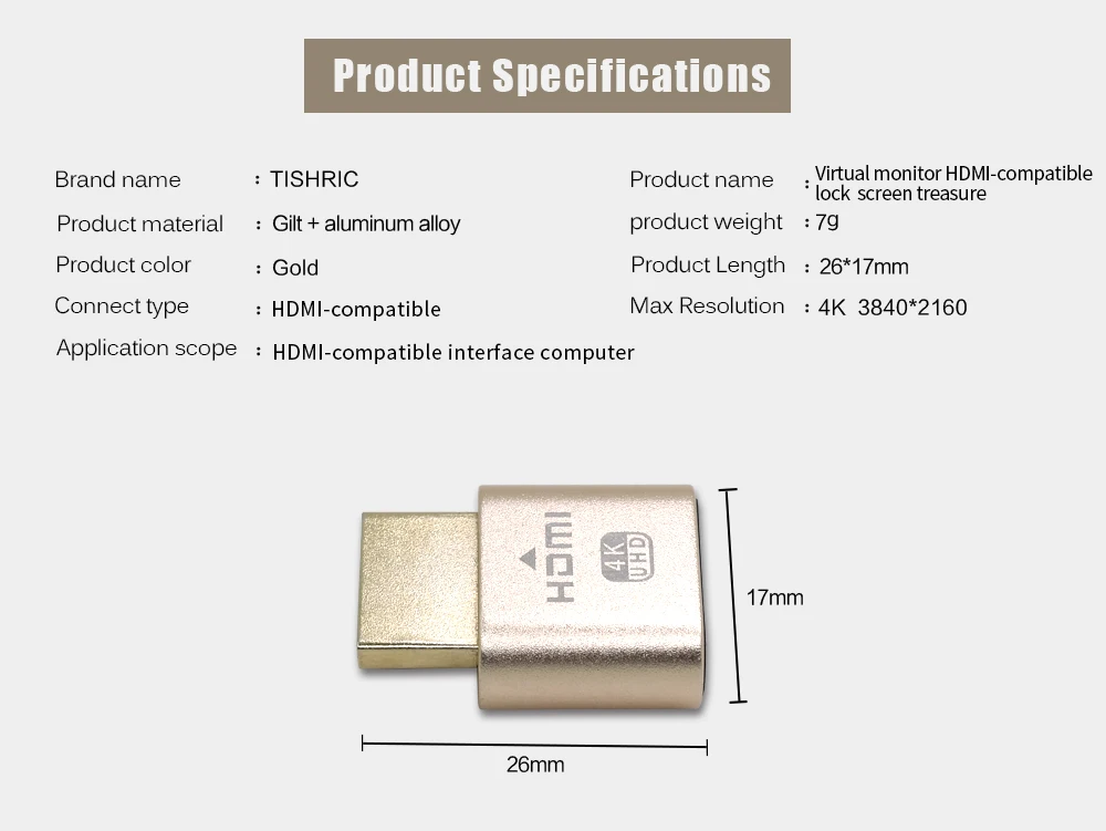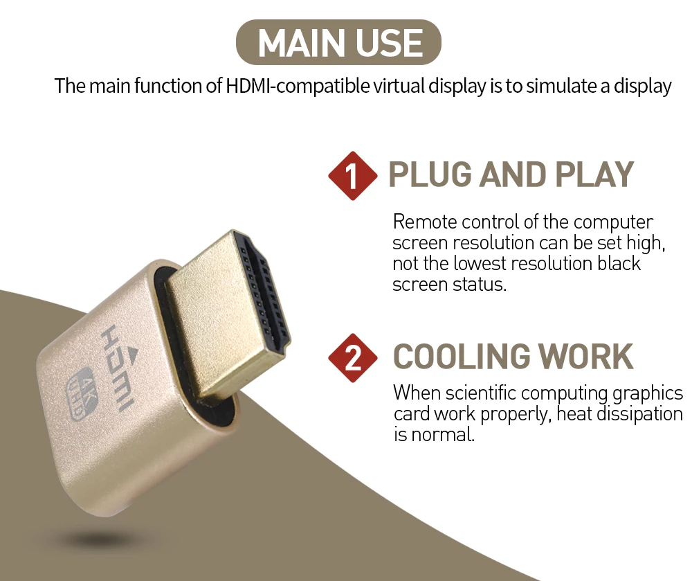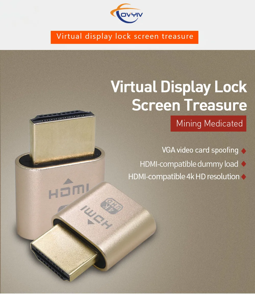 COVYIV HDMI совместимый виртуальный дисплей HDMI муляж 4K муляж штекер DDC EDID Чит виртуальный штекер эмулятор адаптер для майнинга