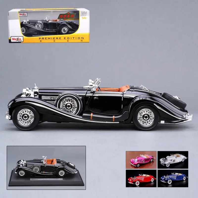 Модель классического автомобиля Mercedes-Benz 500K Blcak 1:18, модель автомобиля из сплава, коллекционные украшения, подарки, игрушка