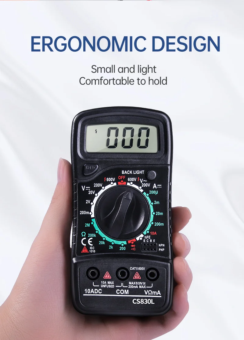 Цифровой мультиметр, тестер A-BF CS830L, вольтметр, амперметр, тестер сопротивления, Омметр, транзистор, ручное хранение данных с задней подсветкой