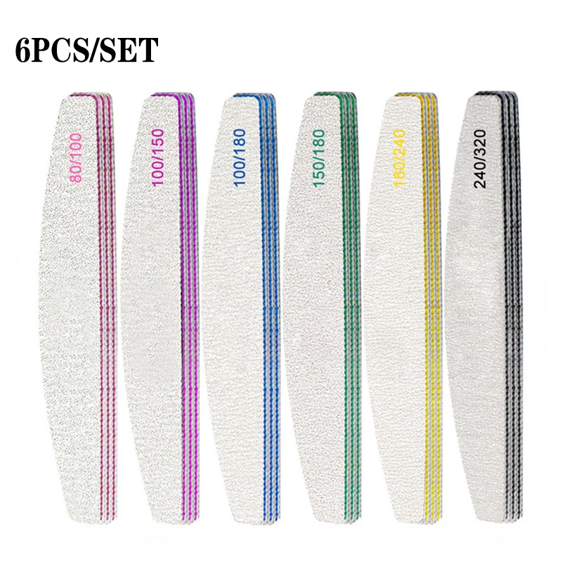 Профессиональная пилка для ногтей 6 шт.компл., пилки для ногтей, наждачная бумага в форме Луны, акриловая пилка для ногтей, инструменты для дизайна, буфер для ногтей, шлифовка, полировка