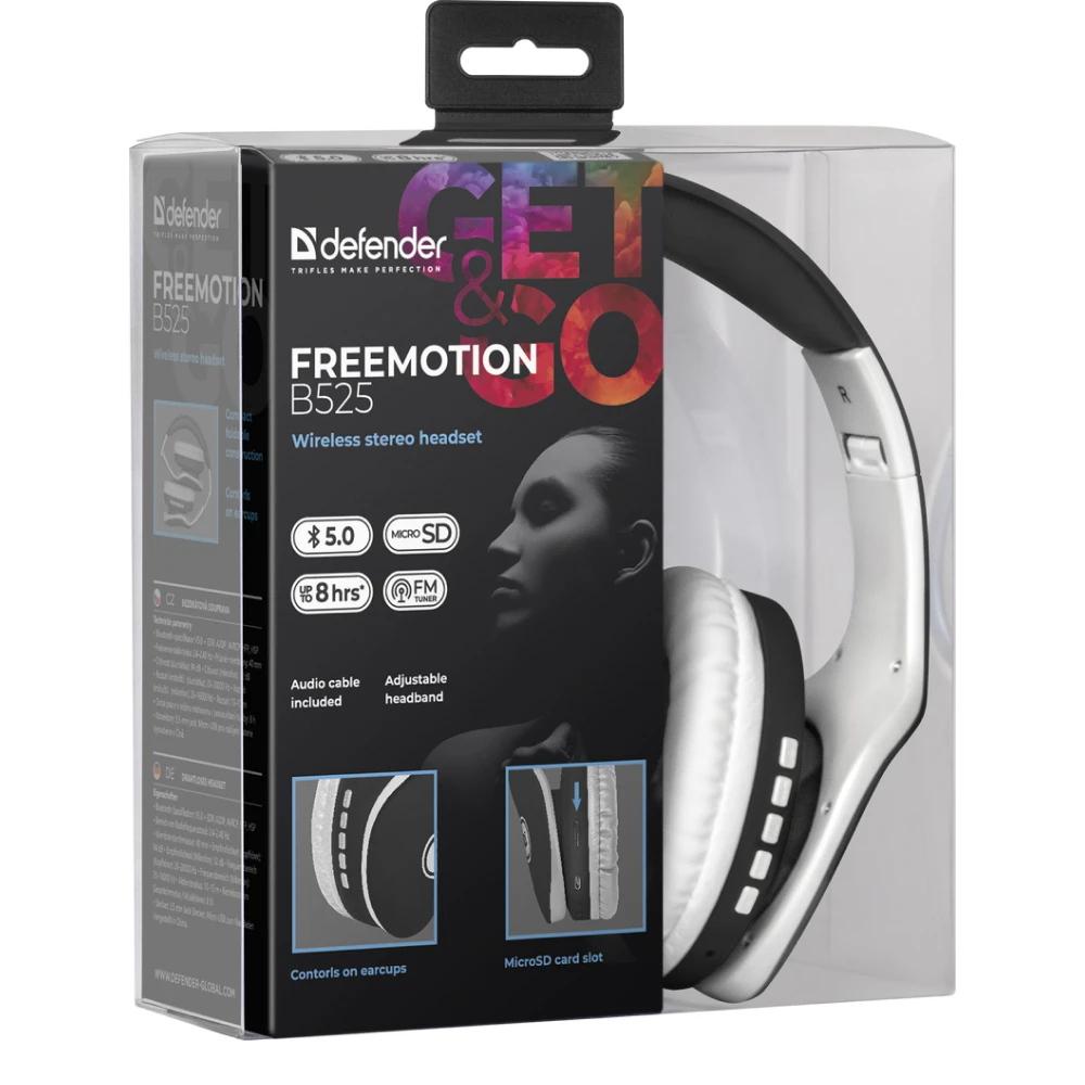 Беспроводные наушники defender FreeMotion B525 с 40 мм динамиками воспроизводят громкий, мощный и еще живой, реалистичный звук. Гарнитура встроена в медиаплеер и fm-приемник. Нет необходимости подключать смартфон или ноутбук-Просто настройте на нужную волну или вставьте карту памяти microSD в слот. Регулируемая повязка на голову позволяет легко выбрать оптимальную длину дужки. Благодаря складывающемуся дизайну эта модель удобно хранить и брать с собой в поездки. Слушайте музыку и отвечайте на звонки около 8 часов-так много резерва мощности в батарее. Во время зарядки батареи Используйте проводное соединение, для этого есть соответствующий кабель.