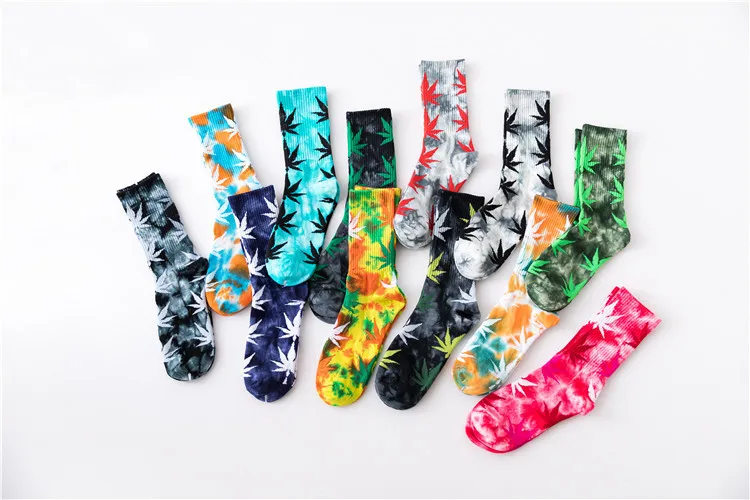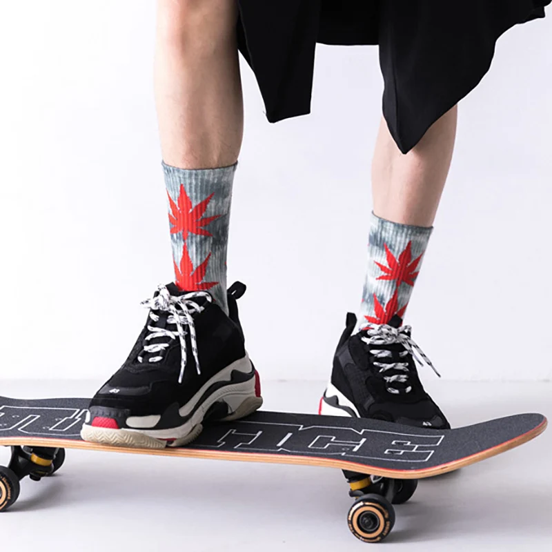 Носки унисекс Мужские для скейтборда, длинные хлопковые с принтом кленовых листьев, веселая трава, для скейтборда