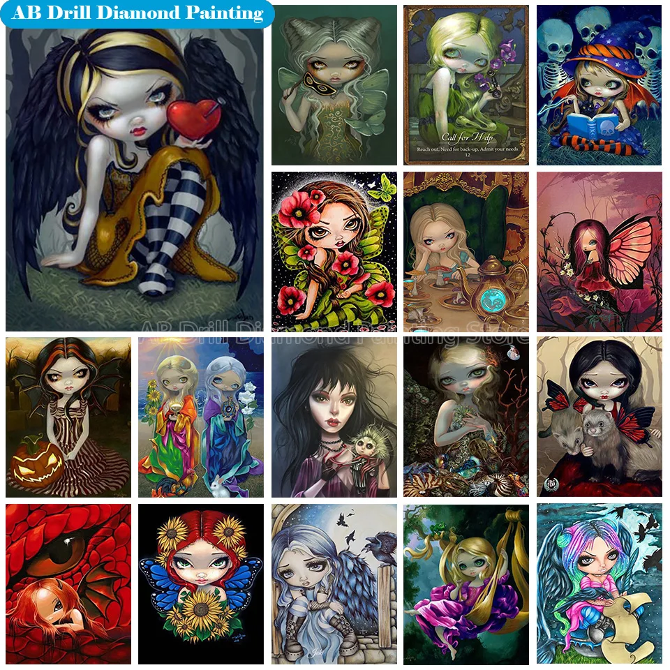 Алмазная живопись 5D с изображением ангела Девушки AB, животные, во...