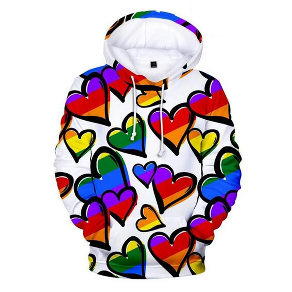 Толстовка ЛГБТ с капюшоном для мужчин и женщин, повседневный свитшот с 3D-принтом граффити в стиле Харадзюку для лесбиянок, пуловер с флагом, одежда для любви, топы