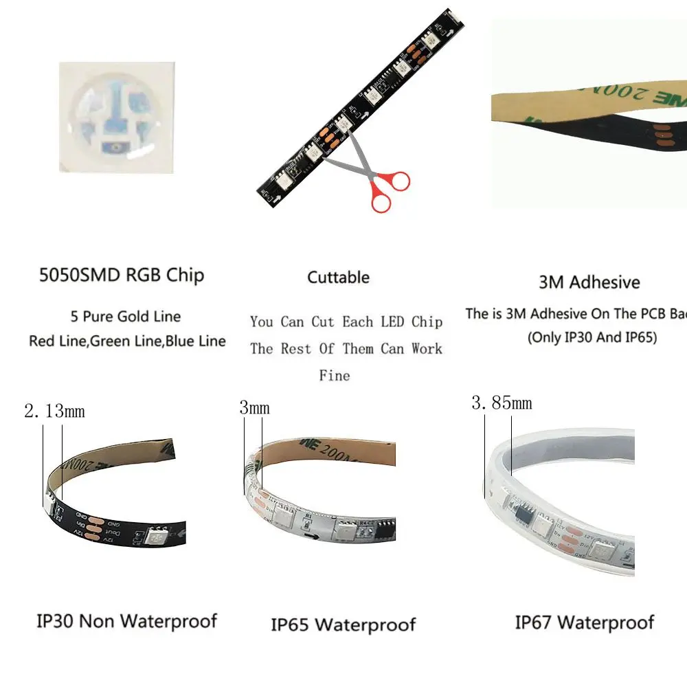 (2) IP65 --- силиконовое покрытие, легко режется, наружное использование