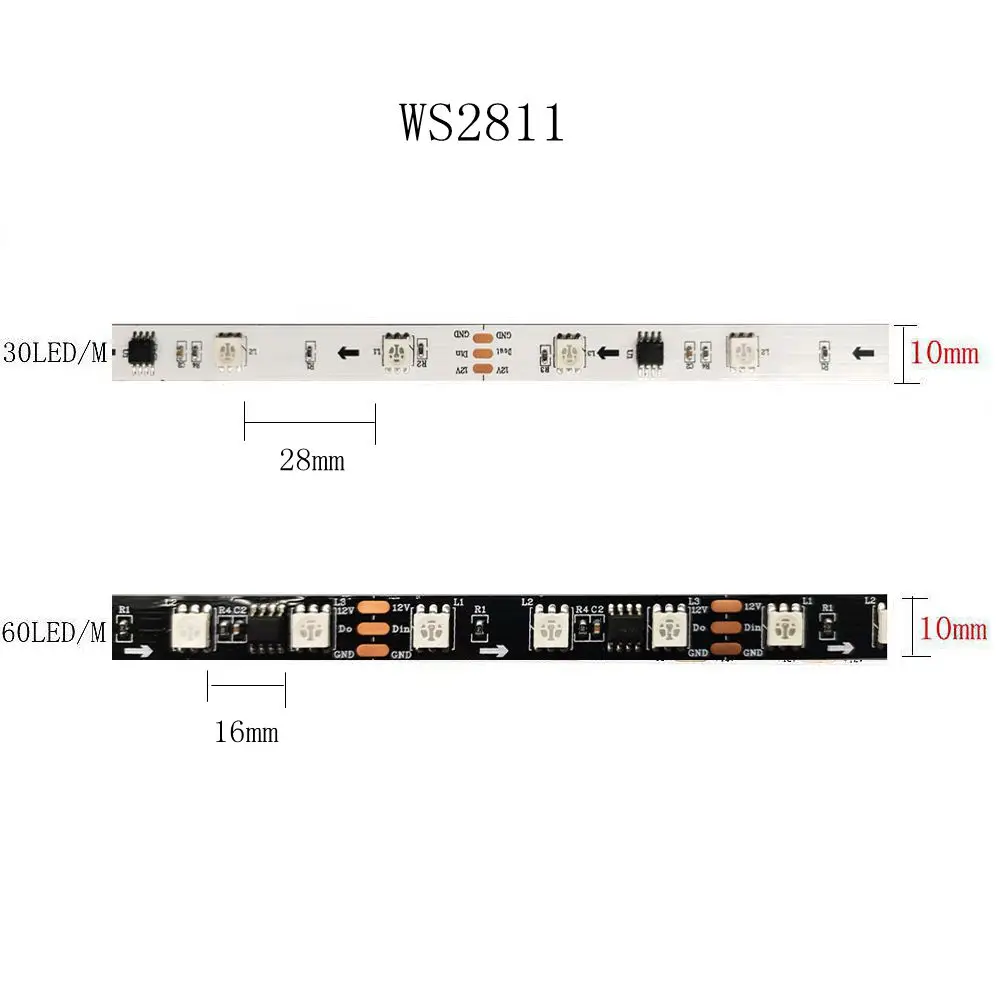 WS2811 должен использовать источник питания DC12V (нужно купить дополнительно) и светодиодный контроллер (нужно купить дополнительно) для управления!
