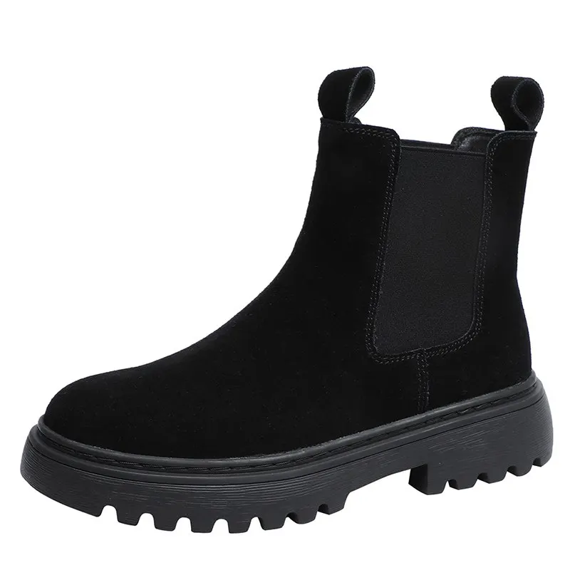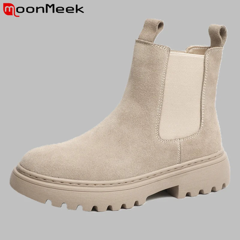 Новинка 2022, женские замшевые ботинки челси moonk из коровьей кожи, ботильоны без шнуровки на платформе, женская обувь из нубука на осень и зиму