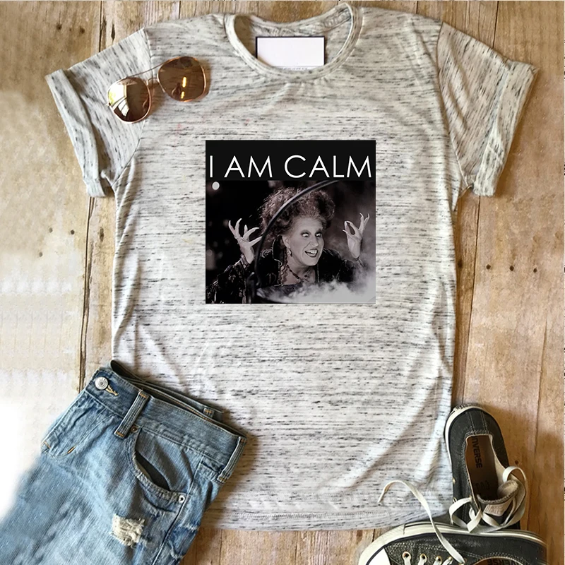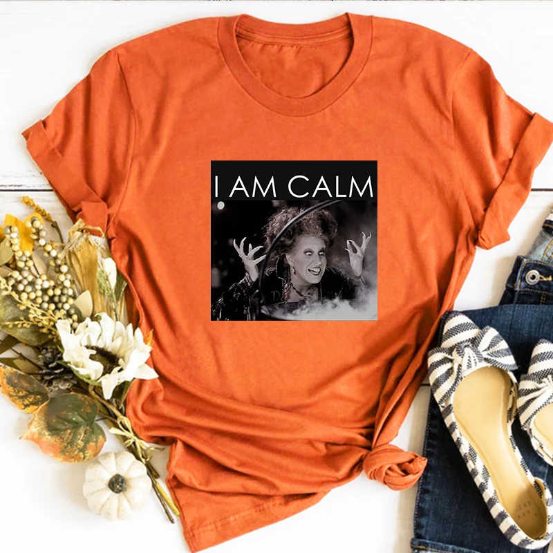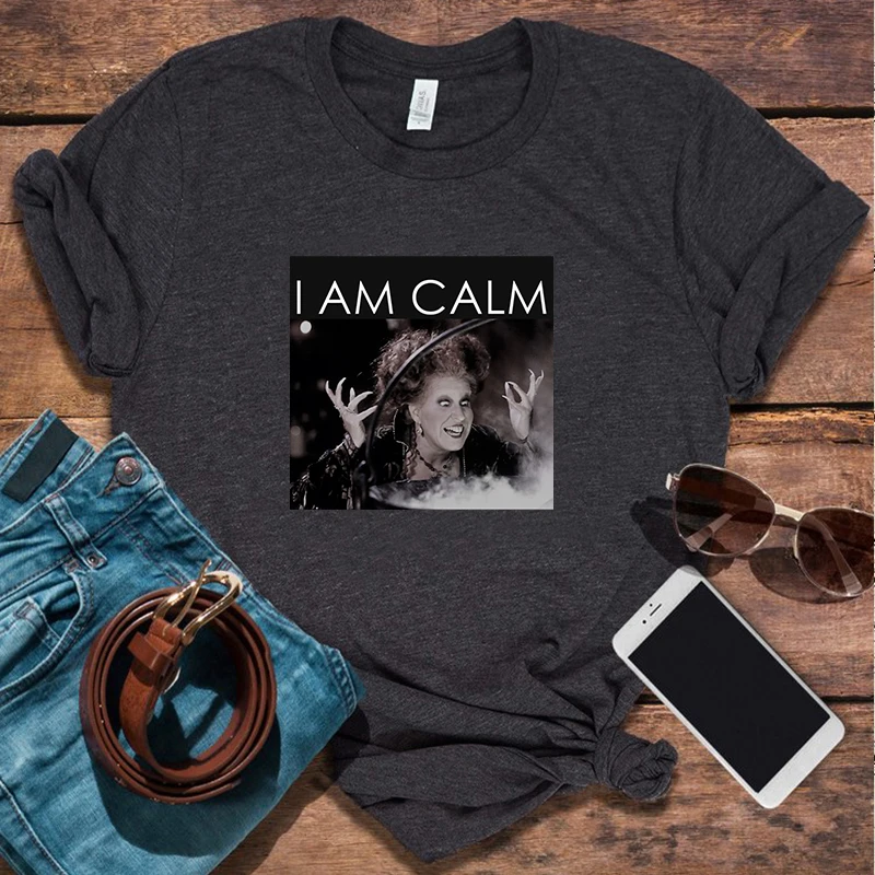 Женские футболки с рисунком I AM CALM, рубашка с изображением Сандерсона и сестры, рубашка в стиле Харадзюку с черепом на Хэллоуин, 2021, винтажная Женская одежда с мультяшным призраком