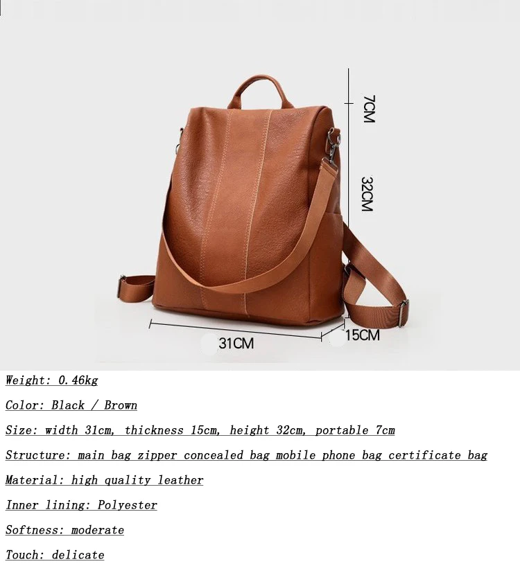 Рюкзак женский кожаный, с защитой от кражи, винтажный, 2021