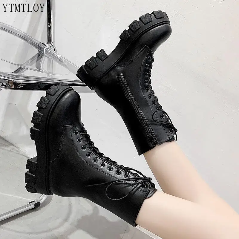 Женские зимние ботинки на платформе, Нескользящие кожаные ботильоны, женские зимние модные ботинки Ytmtloy Botines De Mujer, 2022