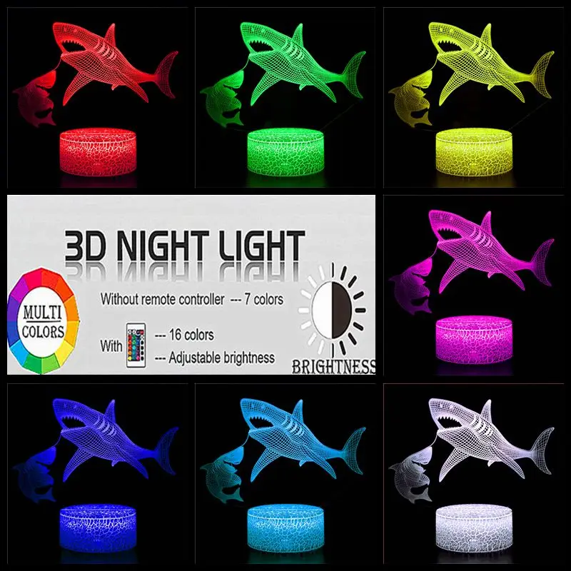 Ночник Морская жизнь, Акула, светодиодный 3D светильник, атмосферный светильник, подарок, украшение для вечеринки, игрушка с дистанционным управлением, животное, рождественский подарок, USB