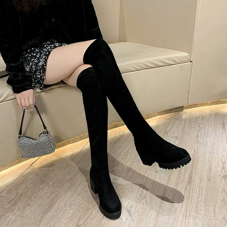 Женские сапоги выше колена из натуральной кожи, эластичные ботфорты, обувь на высоком каблуке, оригинал, весна-осень-зима