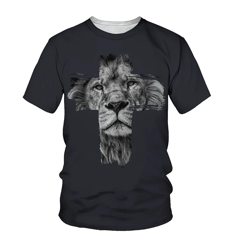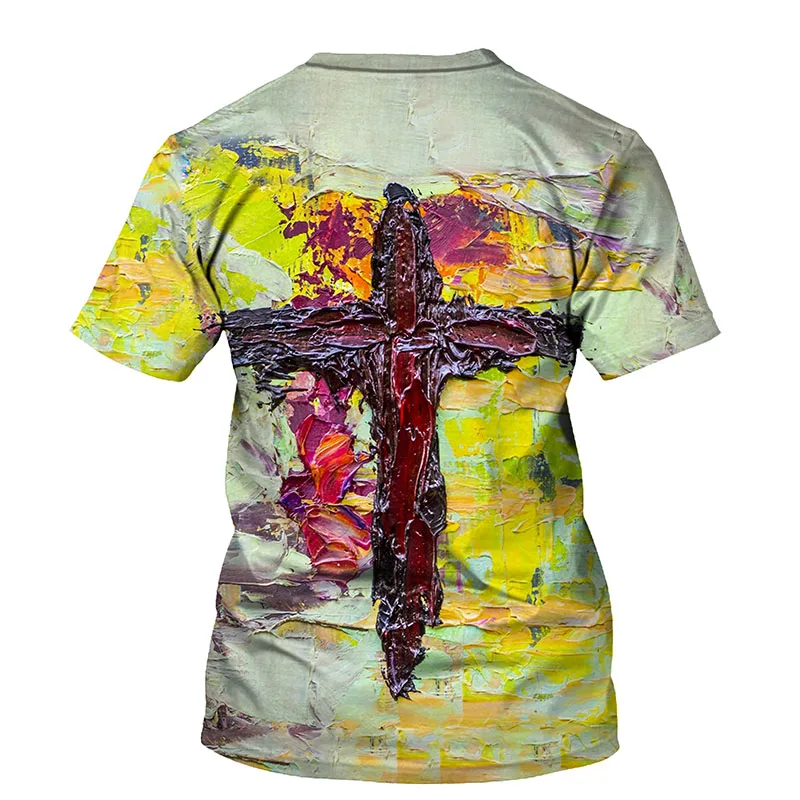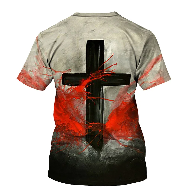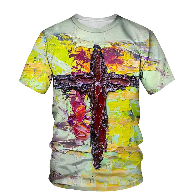 Футболка мужская с круглым вырезом, модная повседневная тенниска с 3D-принтом Креста, с изображением Иисуса, майка в христианском стиле с короткими рукавами, лето 2021