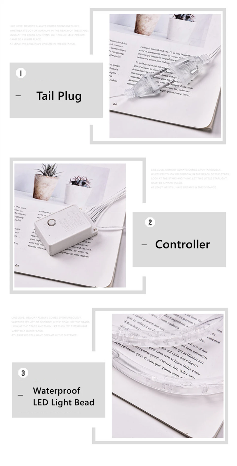 Повод: спальня/вечерние/для дома/праздника/свадьбыЦвета: теплый белый/РазноцветныйСтиль: Модный/современныйРазмеры: 3,5 м проводаТип питания: кабель питания/батарея (не входит в комплект)/пульт дистанционного управления