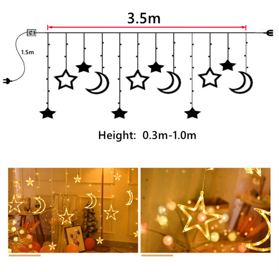 1. Высококачественный материал, долговечный и прочный, может создать романтическую атмосферу освещения2. 3,5 метров в длину. Может быть согнута и отрегулирована под любую форму, которую вы хотите, чтобы удовлетворить ваши декоративные потребности3. Гирлянда в форме звезды/Луны также идеально подходит для декорирования книжных шкафов, фоторамок, дверей и окон дома, комнат, садов, деревьев и т. д.4. Широкий спектр приложений, свадебные декорации, отели, бары, вечеринки, дома, окна, клубы, концерты, караоке, свадьбы, сцены, Баллистические залы, места для конфессий, фестивали и т. д. Чтобы любая сцена стала теплой и романтичной