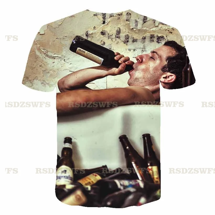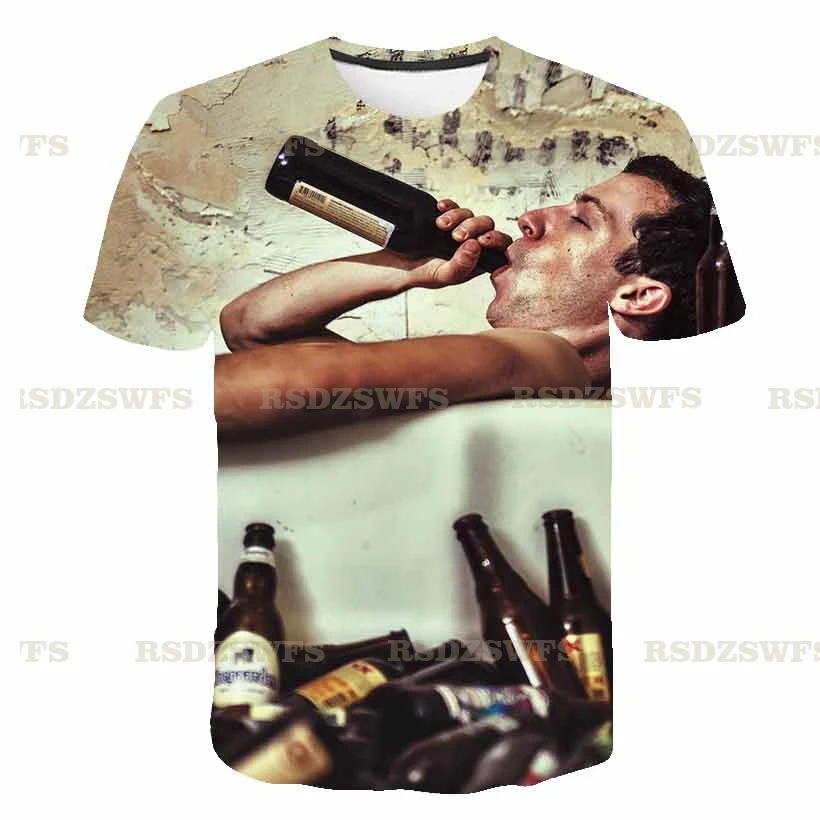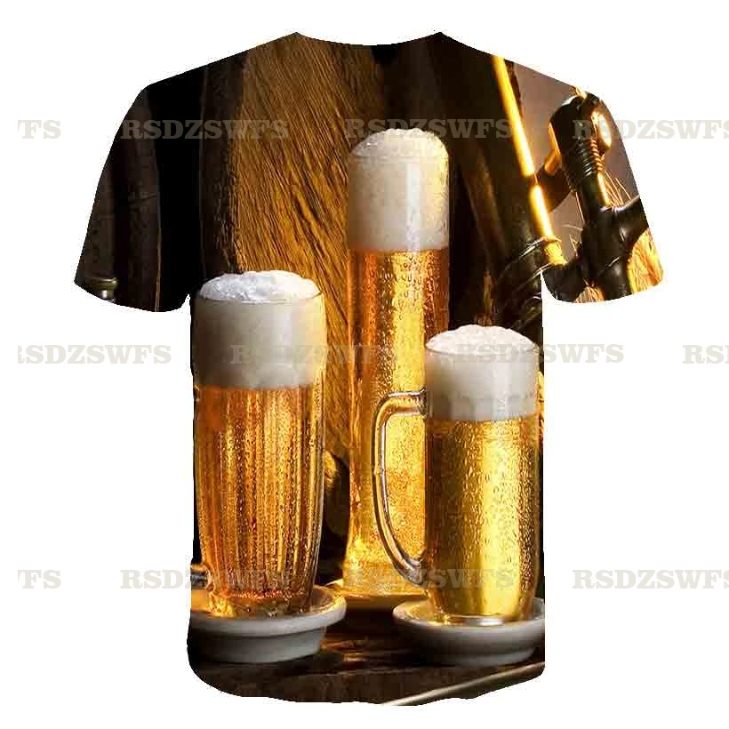 Summer Men T -Shirt 3d Beer Time Short Sleeve Novelty Water Pattern...
