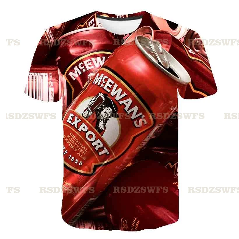 Новые стильные 3D футболки с принтом пивных банок хип-хоп с круглым...