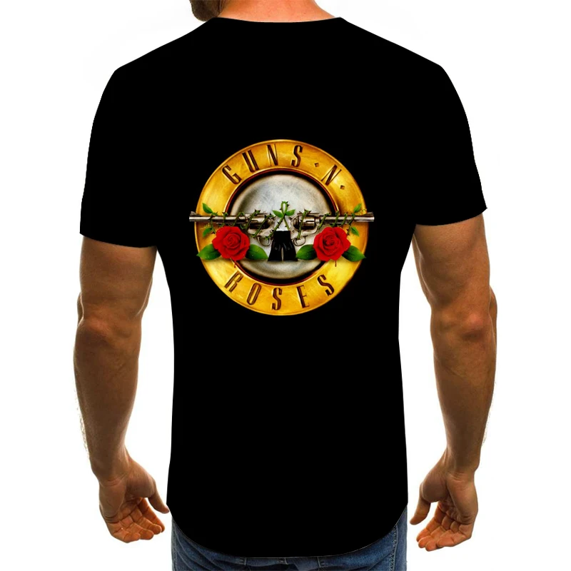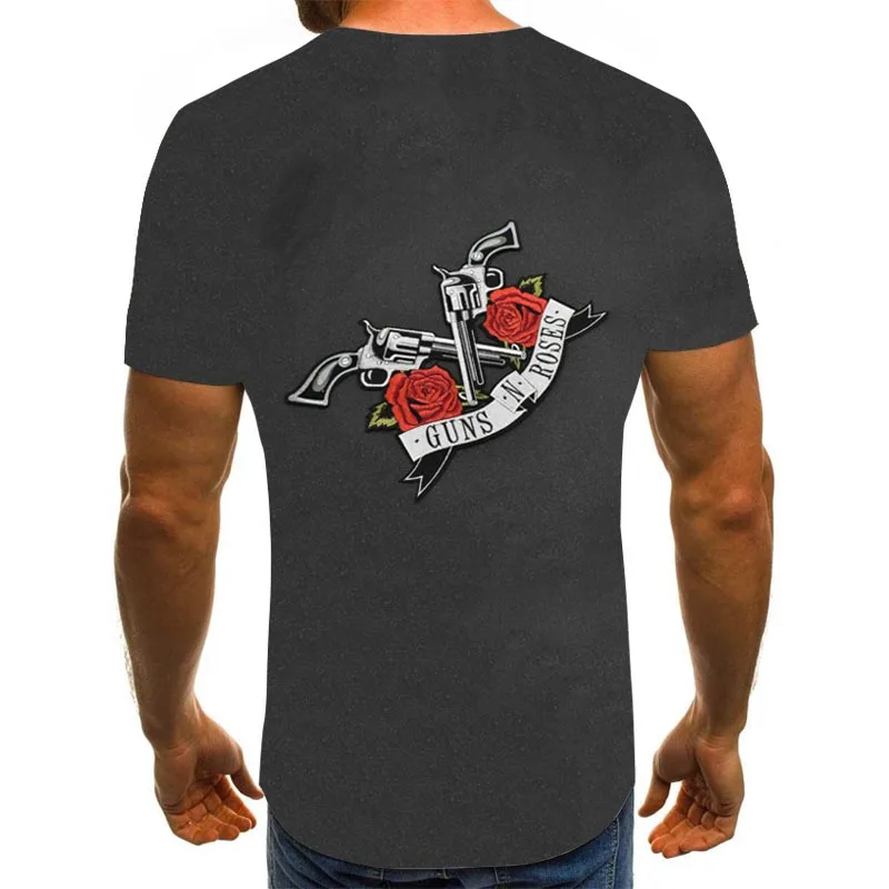 Новинка, модная футболка в стиле панк, футболка с принтом Guns N Roses, Мужская черная футболка, топы из тяжелого металла, платье с 3D-принтом оружия и розы, футболки в стиле хип-хоп