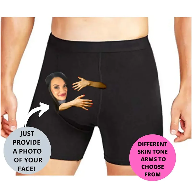 Мужские трусы-боксеры с принтом лица на заказ, Забавный девиз с фот...
