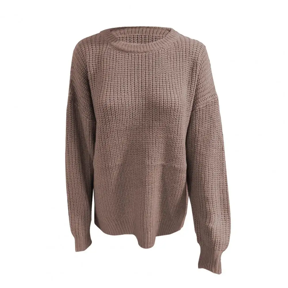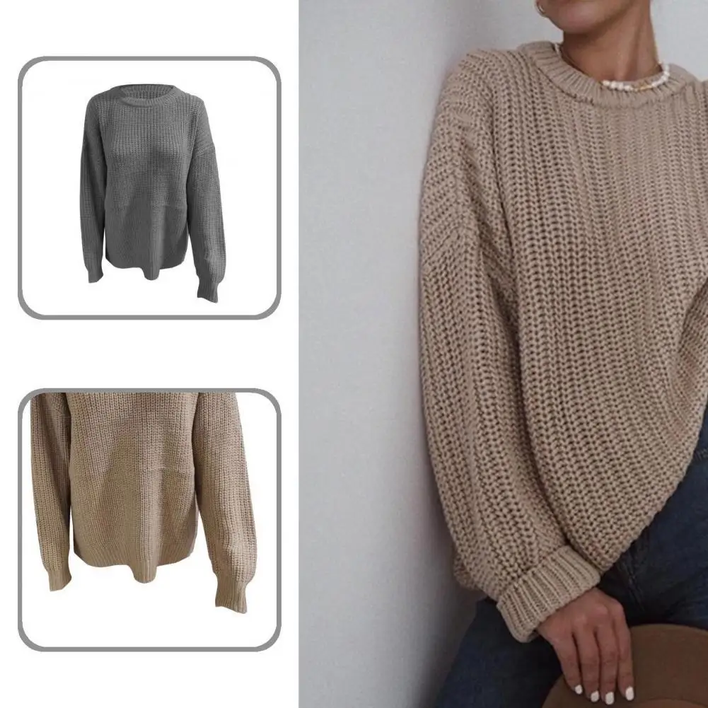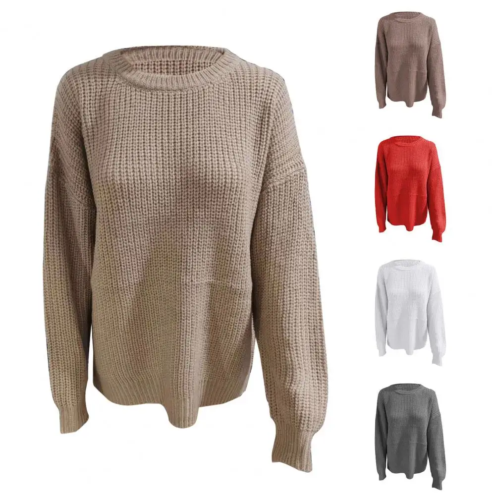 Весенний свитер с длинным рукавом, повседневный вязаный теплый женский Однотонный свитер