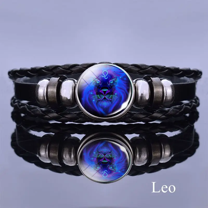 Светящийся кожаный браслет 12 знаков зодиака, мужской и женский бра...