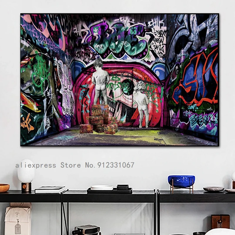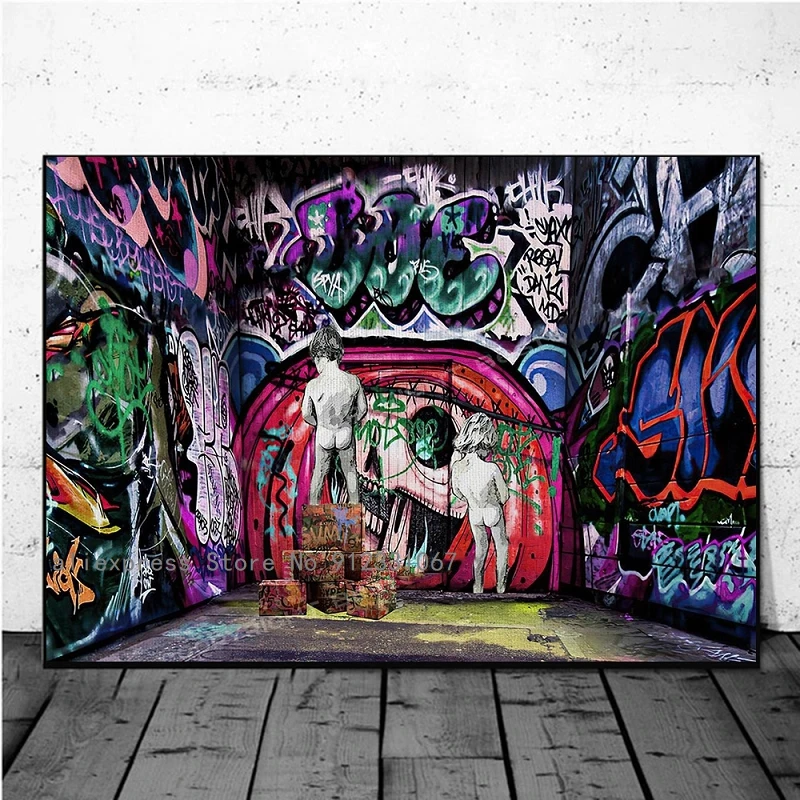 Уличная граффити Бэнкси, красочная Абстрактная Картина на холсте, детский постер и принты, Настенная картина для украшения дома