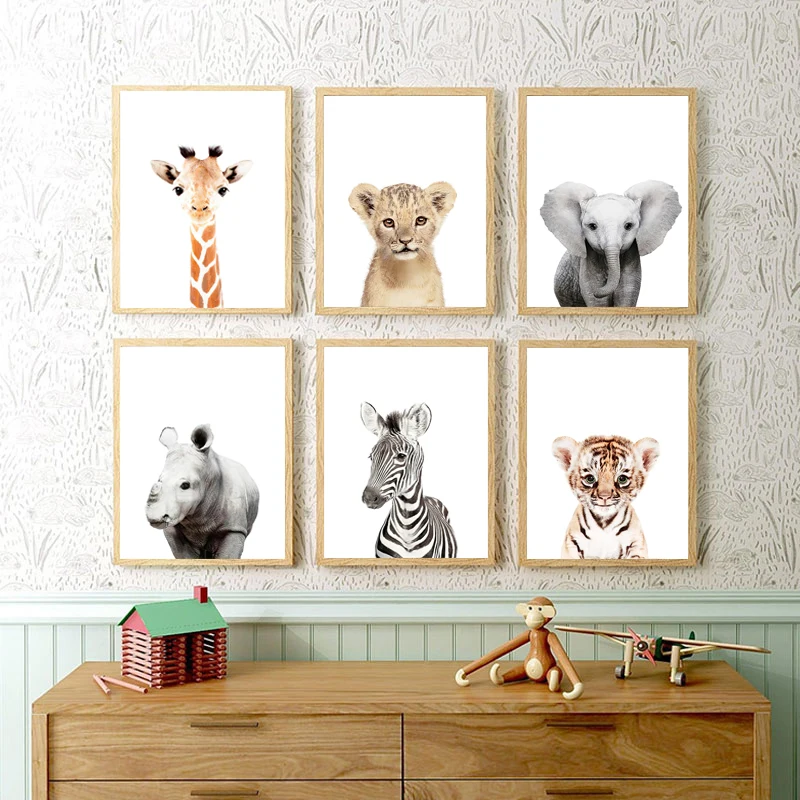 Детская комната животные настенные плакаты Decorativo слон настенны...