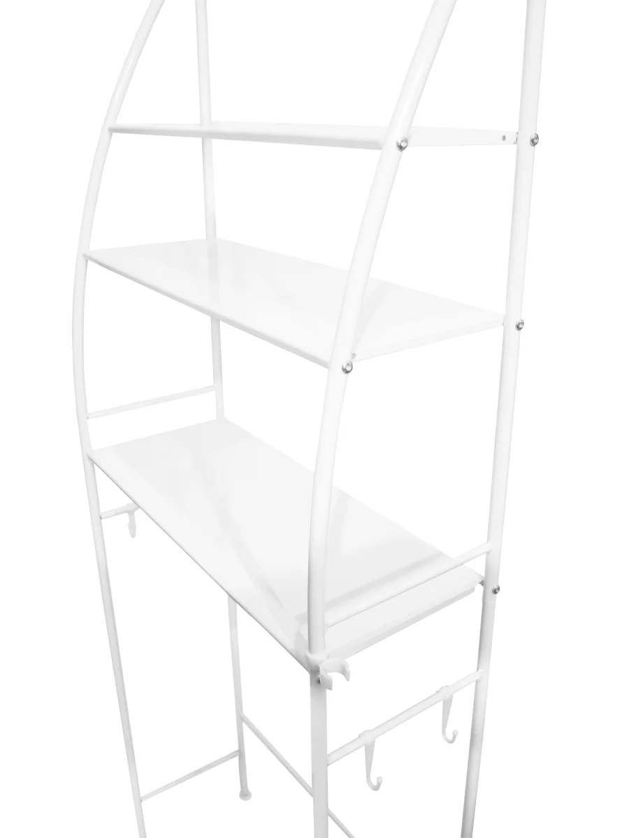 Стеллаж EVGL отлично подходит как для санузла, так и для ванной комнаты. Внутренний размер по горизонтали 61.5см, что позволяет поставить стеллаж не только над туалетом, но и практически над любой стиральной машиной. Расстояние между полочками позволяет поставить любые предметы хозяйственного инвентаря, принадлежностей для стирки, принятия ванной, а на крючки Вы можете повесить полотенце или тряпочки для уборки. Благодаря универсальному дизайну отлично смотрится в любом виде интерьера.