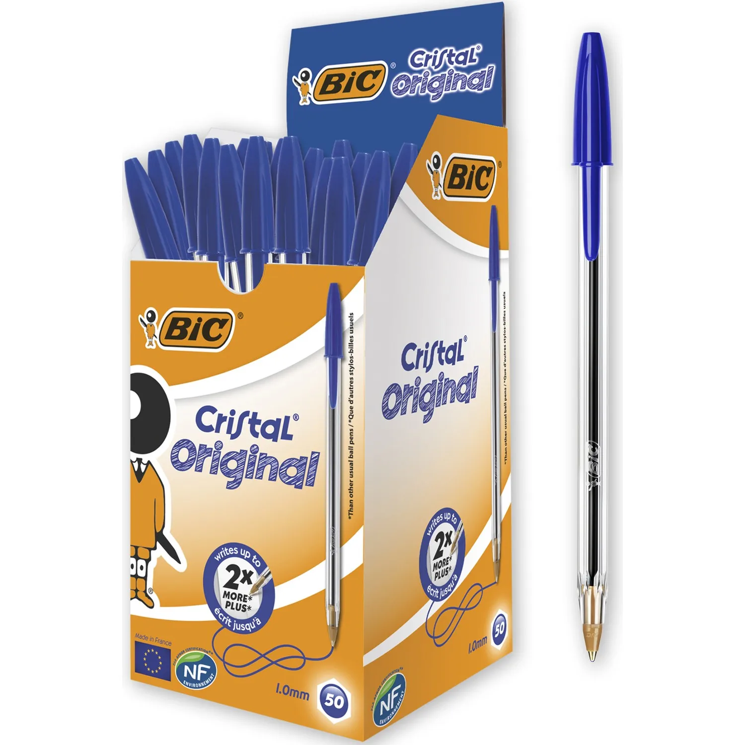 Шариковая ручка Bic Cristal, средний размер, 50 шт. в коробке, канцелярские принадлежности, школьные принадлежности, инструменты для письма для школы, офиса, стола, лучшее качество