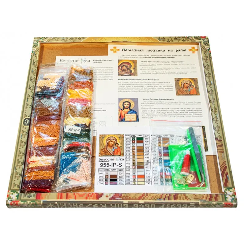 Торговая марка Белоснежка предлагает вашему вниманию серию наборов для творчества Светлые образы своими руками. Воспроизведите удивительные образы сияющих православных икон в картине, собранной из блестящих и переливающихся маленьких ограненных камней. Простые действия приведут к потрясающему результату и радости за итог своего труда, нужно только отрешиться от суеты, очистить свои мысли и прикоснуться к истории. Выкладывание иконы — это отдых для души и приобщение к православным традициям. Готовая работа – прекрасный подарок для каждой семьи и близких вам людей. Все иконы являются копиями известных ликов православных святых, написанных с соблюдением всех церковных канонов.