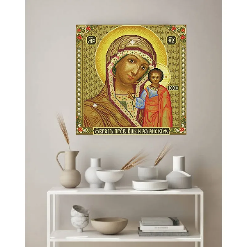 Икона Божией матери Казанская Алмазная вышивка на подрамнике 40х40 см. Белоснежка. 955-IP-S