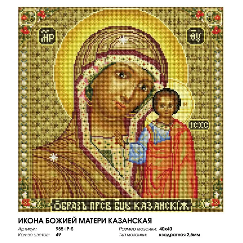 Набор для творчества Алмазная мозаика на подрамнике: 955-IP-S Икона Божией матери Казанская