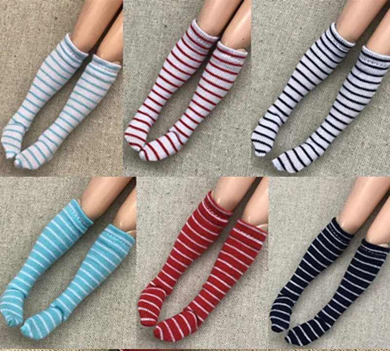 Полосатые чулки для куклы Барби, носки до колена для куклы Blythe 1:6, аксессуары для кукол Момоко 16, 1 пара