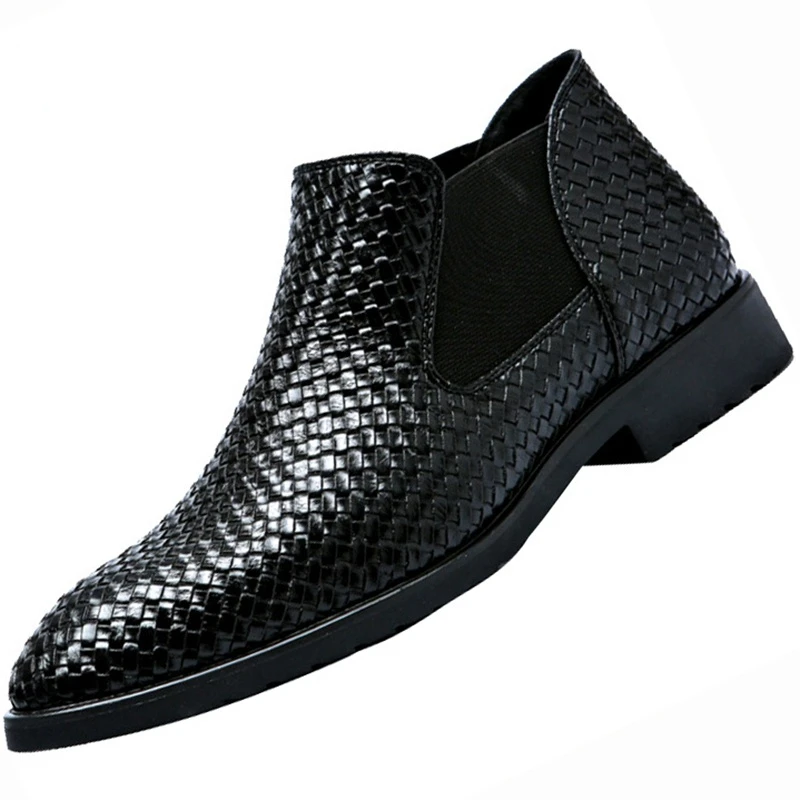 Косплей Ботинки Челси мужские кожаные новые модные плетеные кожаные ботинки мужские слипоны деловые туфли Формальные модельные туфли