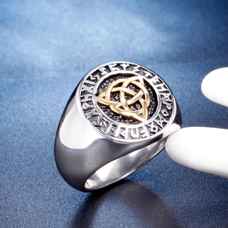 Кольцо мужское из нержавеющей стали с буквами викингов в скандинавс...