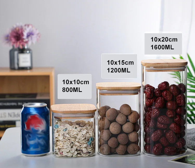 2 шт. квадратные герметичные стеклянные банки, Кухонный Контейнер для хранения, банка для хранения кофейных зерен, каменная банка с крышкой, пищевой контейнер