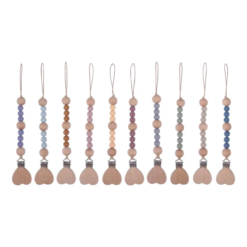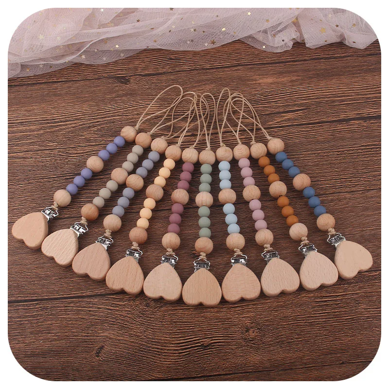 Цепочка-прорезыватель для соски с сердечком, из дерева и силикона, держатель для соски