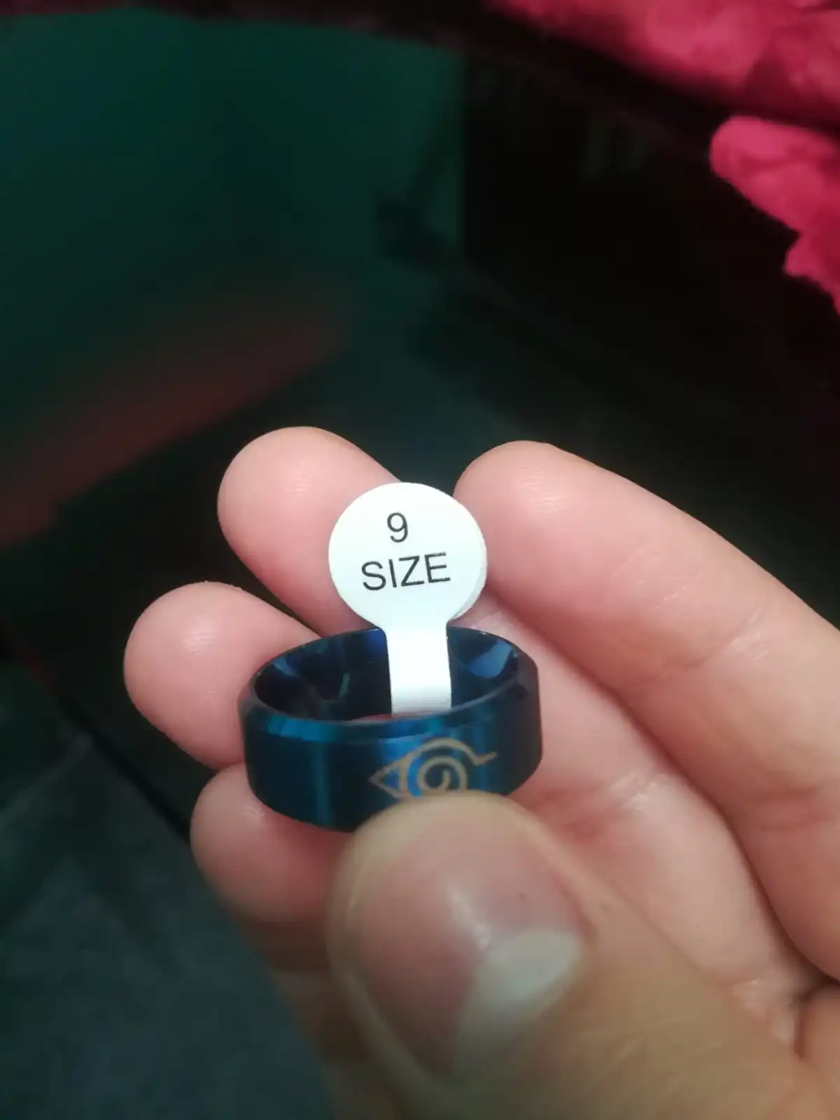 Красивое кольцо, жесткое. Красивый цвет и сияет по бокам. Логотип Naruto выглядит супер хорошо. Я заказал неправильный размер, и он слишком большой для меня, моя вина, но это очень красиво. Хорошее соотношение цены и качества. Arrived soon.