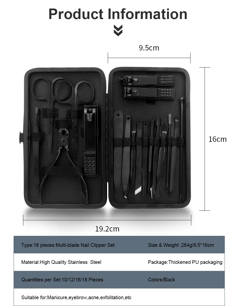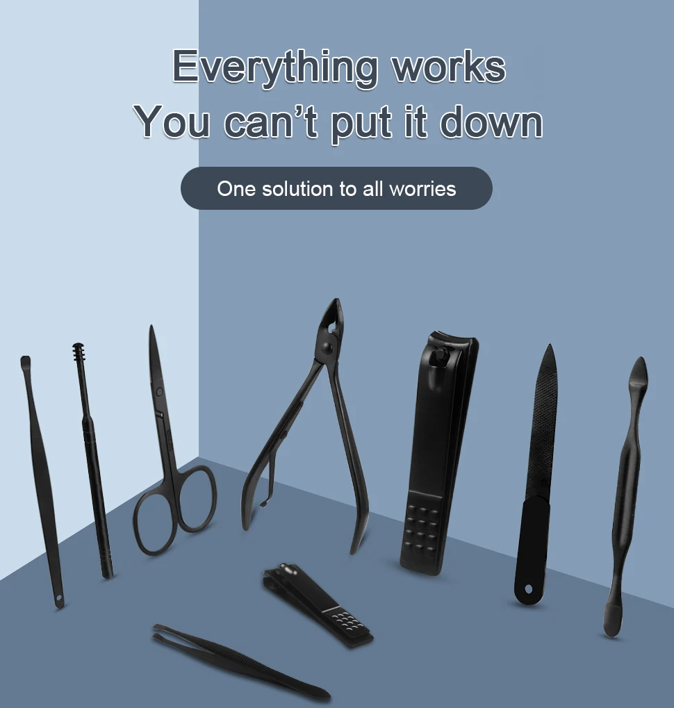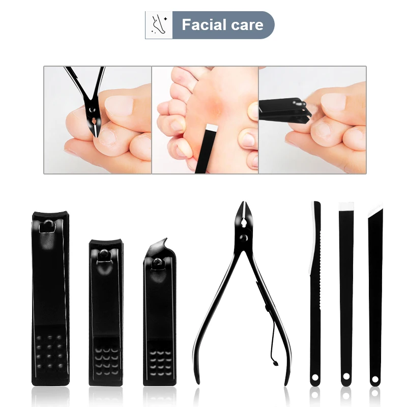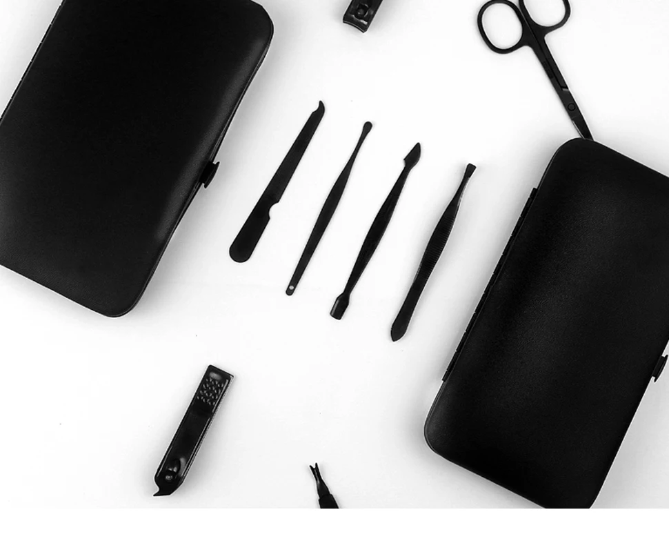 Наш набор для ногтей, его изюминкой являются черные инструменты с текстурой PU кожаный чехол, чувствовать себя комфортно, модно и практично. Это первый раз, чтобы показать на рынке. Вы будете удивлены этим. Не только удобно использовать, но и легко обрезать. Это будет отличный качественный подарок на Рождество, день рождения, годовщину и свадьбу.