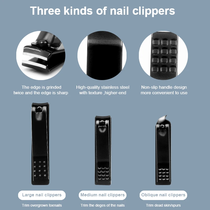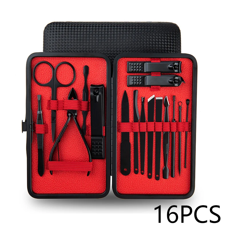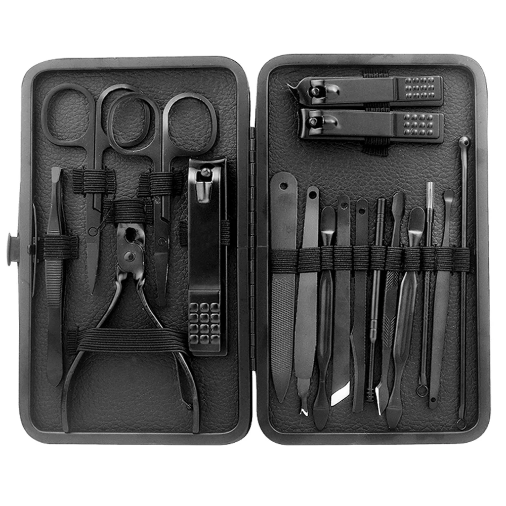 Профессиональные кусачки для ногтей, набор из 18 шт., Черная Нержавеющая Сталь, Ушная ложка, кусачки для ногтей, педикюрные ножницы для ногтей, инструменты для маникюра
