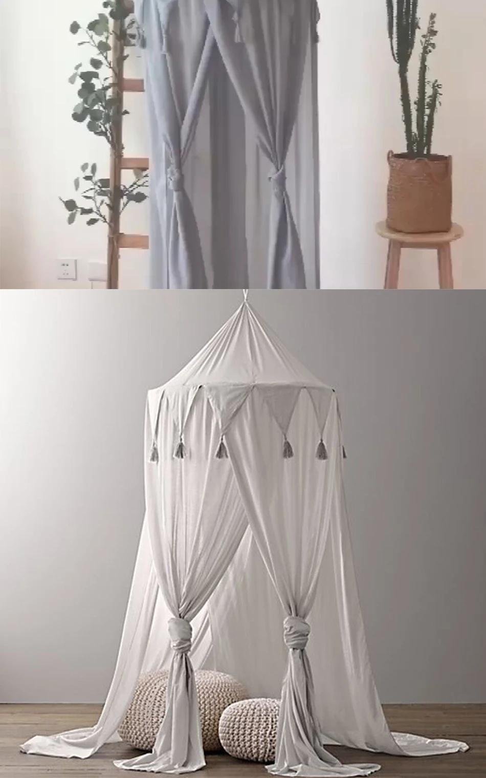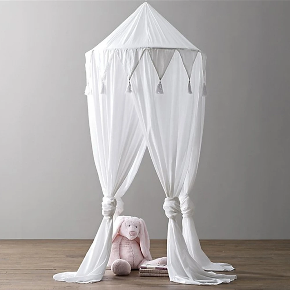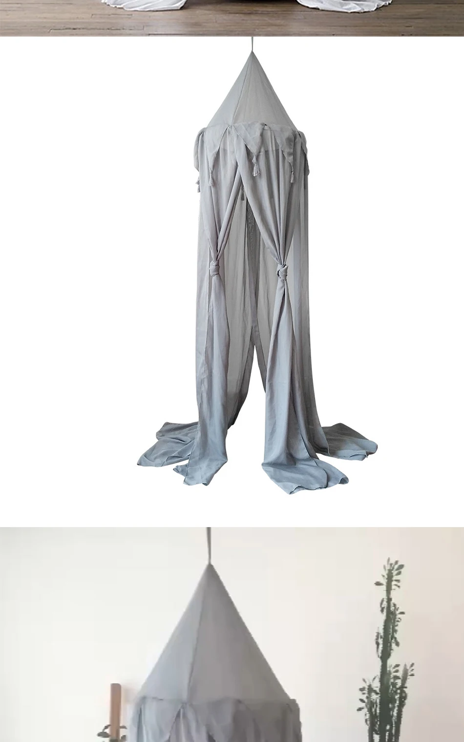 Однотонный навес для детской кровати с треугольными кисточками и кр...