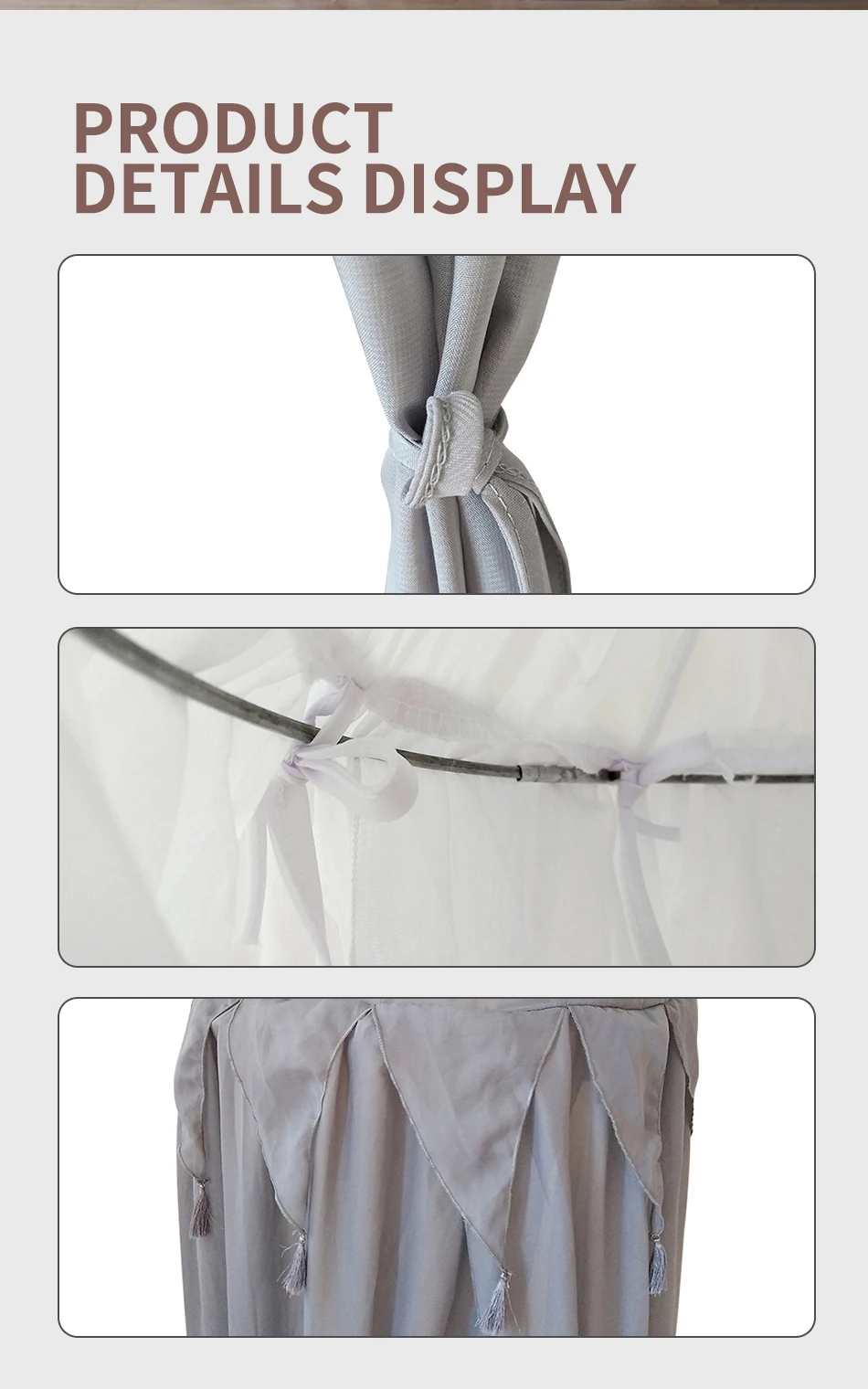 1. Материал:Состав: хлопок и сетки2. Размер:Верхний диаметр 60 см, высота 240 см.3. Подходящая сцена:Детская комната, детская комната, игровая комната, детская комната, детская кроватка, детская кроватка, детский сад, спальня...4. Комплектация:Металлические решетки, москитная сетка, крючок, Золотая КоронаОбратите внимание:Может быть небольшая разница в цвете, из-за настроек монитора компьютера, также с различием в способе измерения, пожалуйста, позвольте 1-3 см в размере отклонения.